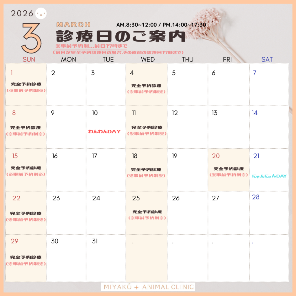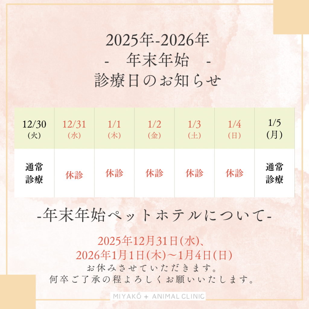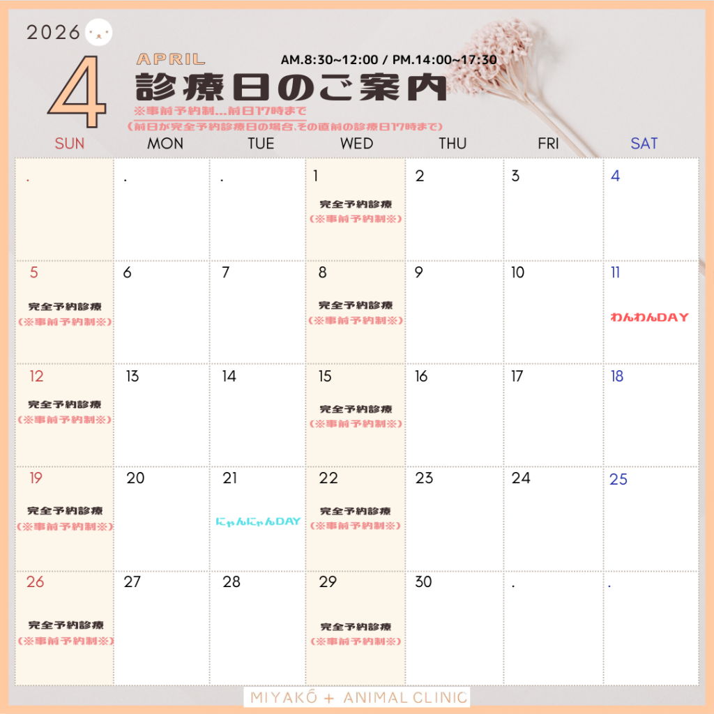 今後ともみやこアニマルクリニックをどうぞよろしくお願いいたします。